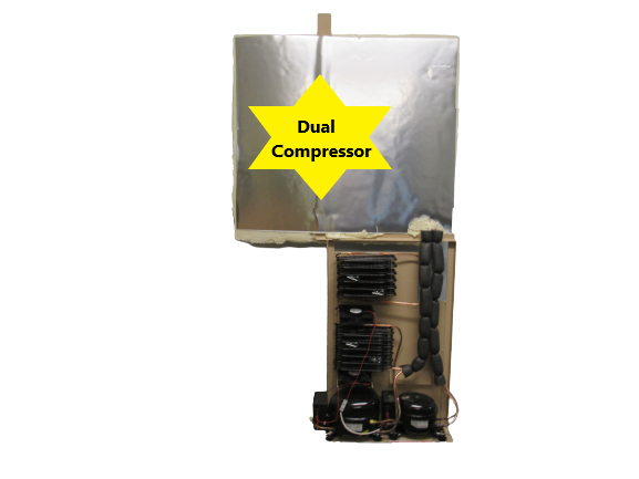 (DOM 1350 Hvac 120VAC) For the: Dometic 1350 . Confirm your model number does not have a ‘SL’ following the model number on the data plate. We have another unit on our website for the 1350 SL. This Replacement unit will convert your existing fridge to a residential fridge, which eliminates your LP gas/ 120V electric absorption system. This cooling unit is built with a Dual compressor system and comes standard with universal refrigerator controller, which is designed specifically for the Hvac units. This controller will eliminate your existing Dometic controls on the front and back of the fridge. This cooling unit is designed to withstand hot humid temps and will keep your ice-cream hard with 70% faster cooling. The Hvac 120V unit uses about 25% less power than the absorption unit uses on the electric setting. Power usage: 3 amps at 120V (360 watts).